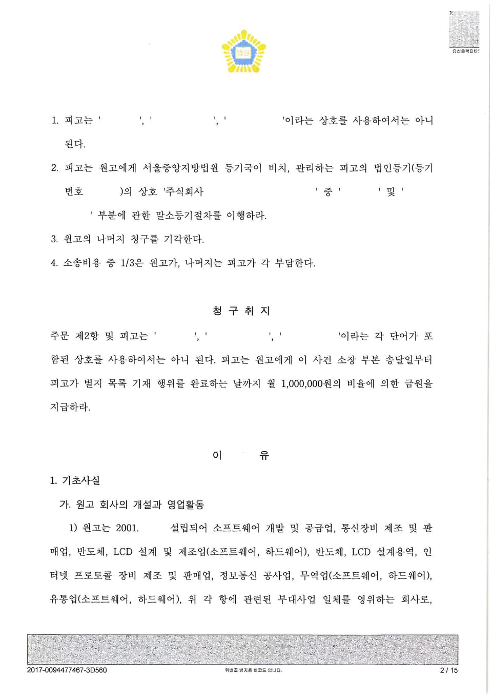 법률업무2017-05-292분[승소] 동일 상호 사용 금지 소송