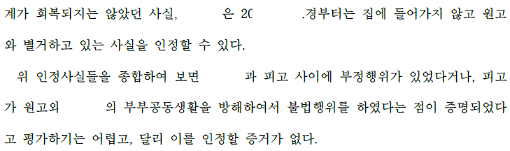 청구기각의 이유는 ‘이 정도로는 부정행위가 아니다’였습니다. 판결문 역시 ‘~~~(부정행위로 의심된다고 주장한) 사실이 인정된다. 그러므로 부정행위라고 볼 수 없다’ 수준의 어떻게 보면 허무할 정도의 표현이었습니다.